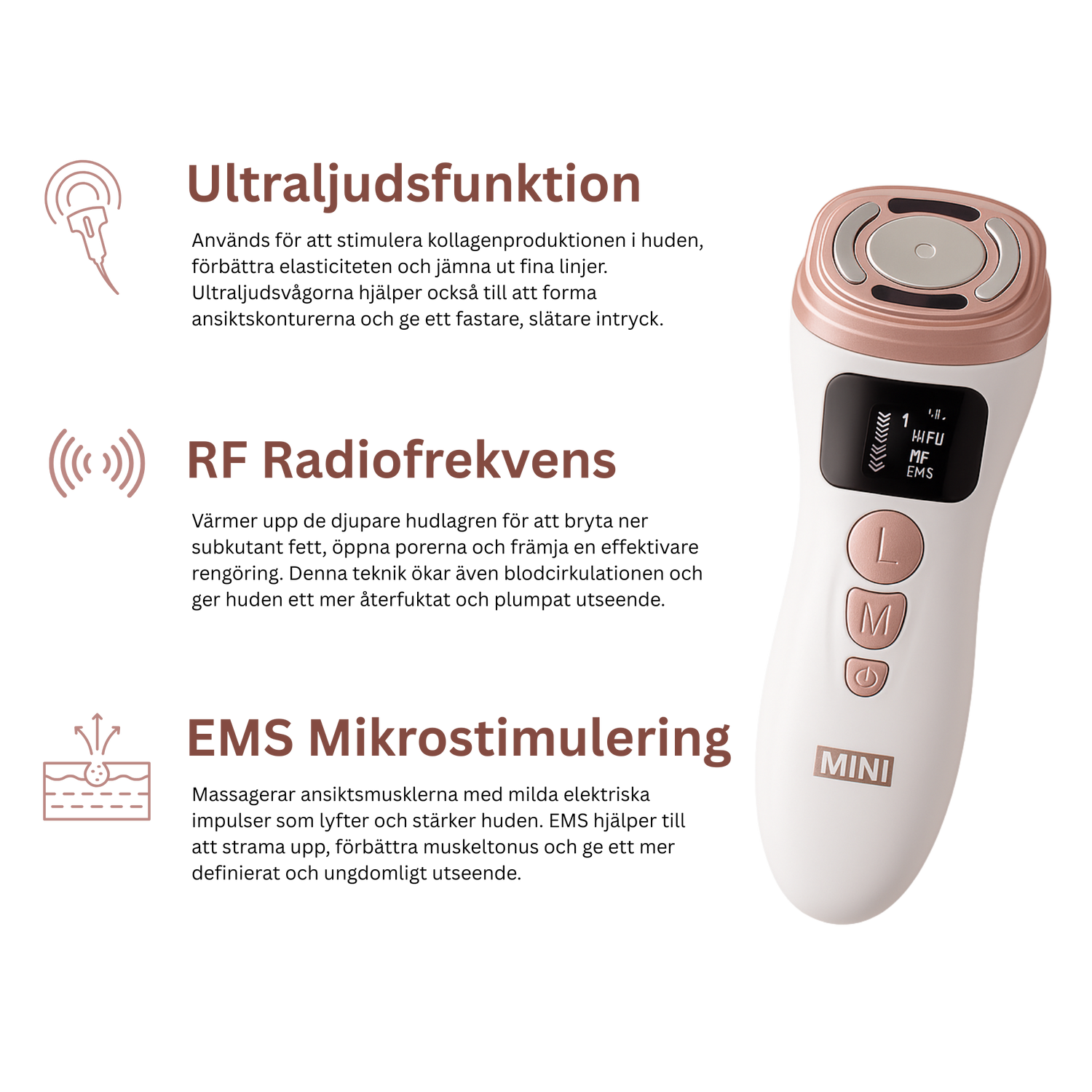 Med modern mikroström- och värmeteknologi stödjer den hudens naturliga processer på ett tryggt och effektivt sätt.